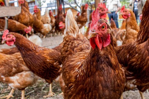 of the birds around the pens. Fresh table eggs are collected daily and shipped to the central warehouse for sorting and distribution.